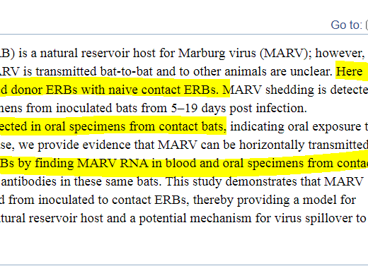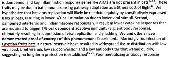 No one understood the relevance of Egyptian fruit bats as a reservoir host for SARS2. Unlike Chinese horseshoe bats, they can be infected and transmit SARS2 without showing disease, just like they do with Marburg. That is the virologistβs definition of a reservoir host.