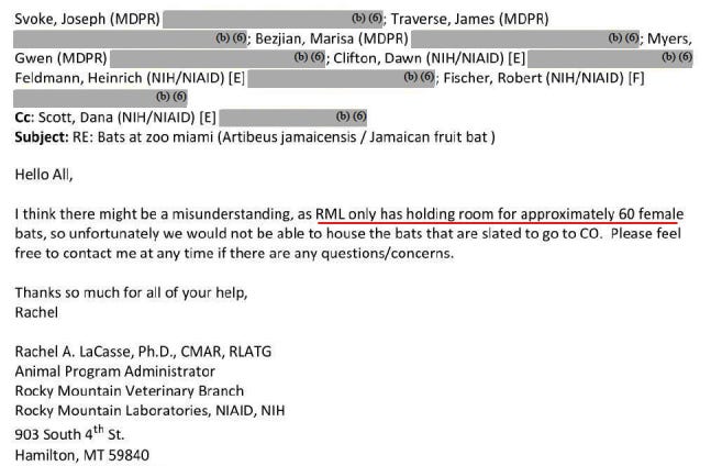 The odd arrangement of CSU raising the bats for RML led to our smoking gun email. Because the bats were housed at CSU rather than RML, the experiment left a paper trail, including an email that later surfaced through FOIA.