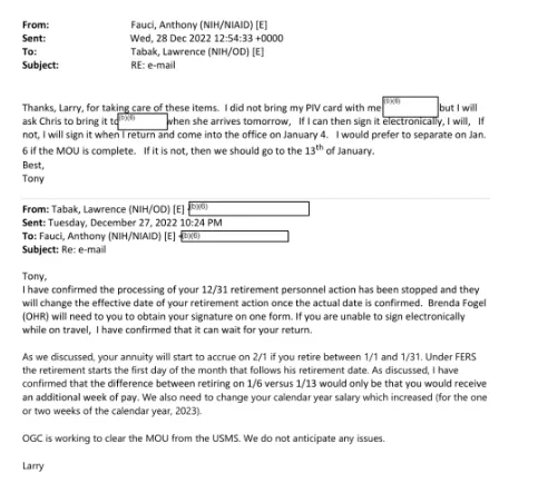 Fauci negotiating an extra week on retirement (Jan 2023) for extra bodyguards (MOU).