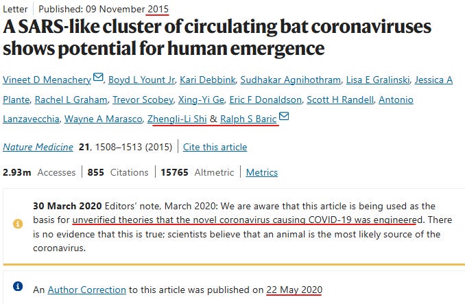 The other co-authors knew what they were doing, defending Baric from Wuhan lab leak rumors in early 2020.