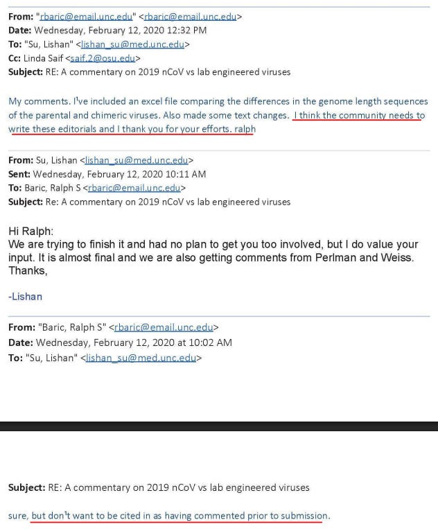 Baric and Shi were asked for comment before EMI publication, but weren’t listed as co-authors. Why? Because Baric explicitly asked not to be “cited.”