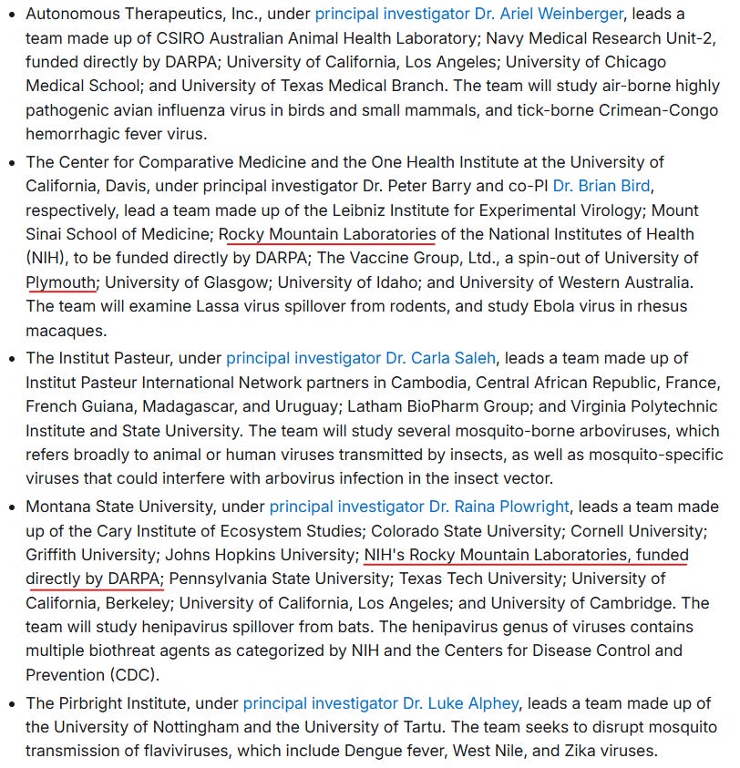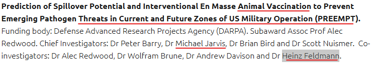 One of their early partners on the losing DARPA Defuse proposal was Vincent Munster from Fauci’s Rocky Mountain Laboratories (RML); however, his name also appeared on four other PREEMPT bids that day.