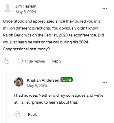 What wasn’t known at the time was that Baric was quietly listening to KGA's evidence for a lab leak during the February 1, 2020, teleconference.