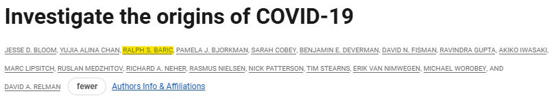 Ironically, the NASEM letter cited the closest known relative (RaTG13) as evidence that SARS2 was a product of natural evolution.