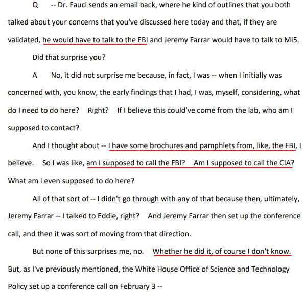 Instead of contacting the FBI, Fauci called Baric, who secretly listened to KGA’s evidence for engineering, then “attacked” him days later. The next day, on February 4, KGA collapsed under peer pressure.