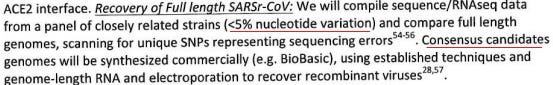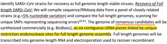 An early DEFUSE draft explicitly states that Baric would “synthetically reconstruct a panel of high-risk full-length SARS-CoV strains.”