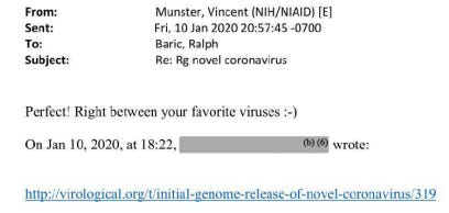 On the same day Linfa Wang resigned, Munster emailed Baric, saying, “Perfect! Right between your favorite viruses :-)” Those were SHC014 and HKU3. What was called HKU3-Smix was funded as HKU3r-CoVs in 2019 and renamed SARS-CoV-2 in 2020. All three names appear in an early DEFUSE draft.