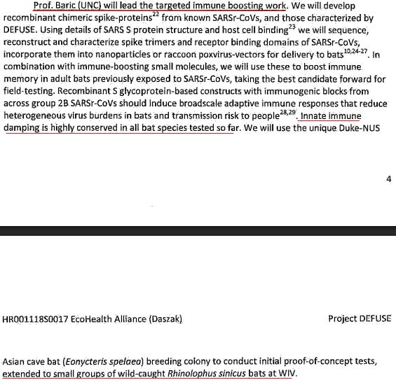 Baric’s platforms were portable, transferable, and deployable worldwide via standard “cold-chain” shipment. Early DEFUSE drafts proposed that Baric and Munster created bat vaccines and forwarded them to Linfa Wang.