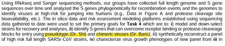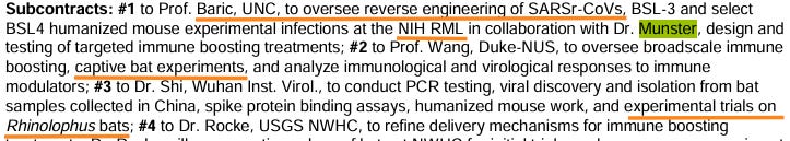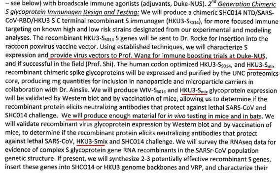 Baric proposed to “provide” his chimeras, such as HKU3-Smix, to Linfa Wang and Zhengli Shi for experimentation in Chinese horseshoe bats. This describes a live virus being tested on live bats.