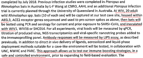 This is demonstrably false, since the “bats will be…inoculated with WIV1.”